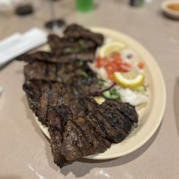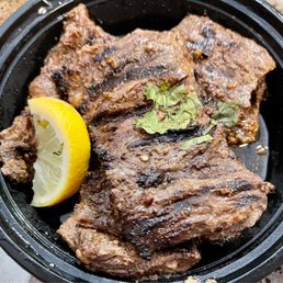 Had the steak, lamb Briyani, naan, and a chicken gravy dish (not pictured), accompanied by chai. Everything tasted great, I really enjoyed my meal. Fairly busy during lunch on a Saturday. The space is not big but it's cozy and clean. Service was good. Easy parking situation.