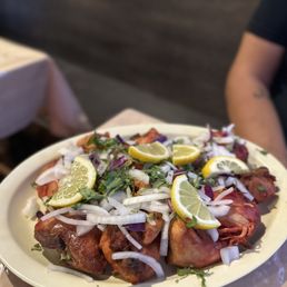 My recent takeout orders from here consisting of the Lamb Shank Curry Combo, Chicken Boti Meal plus a couple Chapli patties were very delicious, juicy, tender and so aromatic. Each very different n each made so well. The lamb shank was soft and had a really good onion/ginger gravy with a couple of well-seasoned beef kabobs charred very nicely. I think these are their little Persian ground beef kabobs n they do taste better than almost every Persian restaurant version of them in Houston bc they are just too fake. Mild, but salted n oniony. I can only trust Darband and Rumi's along with the ones here for that type of kabob. The lamb was only mildly gamy and nicely fatty to the right amount without being too slimy. The chicken kabobs were very well marinated and spiced with a crispy top and soft inside. The spices were spot on. The Chapli pieces were also very good like the others and similar to a kofta kabob, ground meat with some herbs n spices in them. Very soft and pairs great with rice or naan. The rice was really fresh and prepared as was the buttery naan. Great, welcoming service on these visits as well.